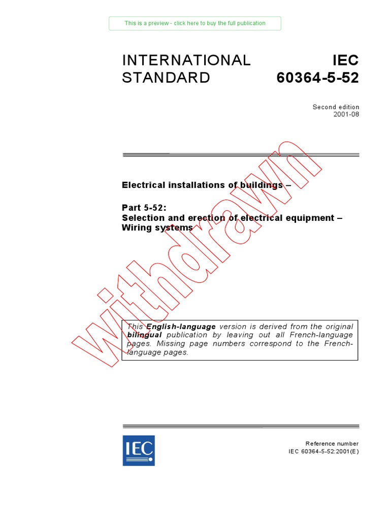 This is a preview click here to buy the full publication. Reference number iec 60364 1 2005 e international standard iec 60364 1 fifth edition 2005 11 this english language version is derived from the original bilingual publication by leaving out all french language pages. In australia our standards are based on the iec standrad but wires have to be numbered and if a wire goes to several different components they each carry the same number. Think of the end user having to turn his head upside down based on this spec.